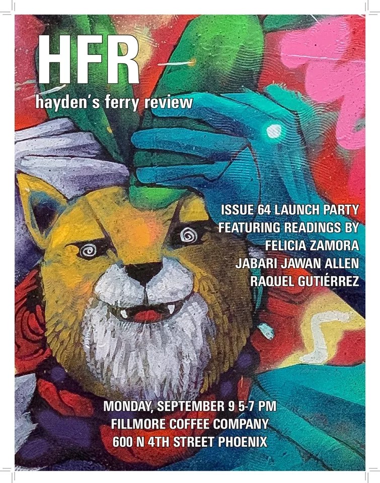 Hayden’s Ferry Review, a semi-annual literary journal edited by MFA students at ASU, has been going strong since 1986. The journal will celebrate the release of its 64th publication, the MAGIC issue, with a launch party at Fillmore Coffee Co. on Monday, September 9. The event features a poetry reading from three contributors: Jabari Jawan Allen, Raquel Gutiérrez, and Felicia Zamora.