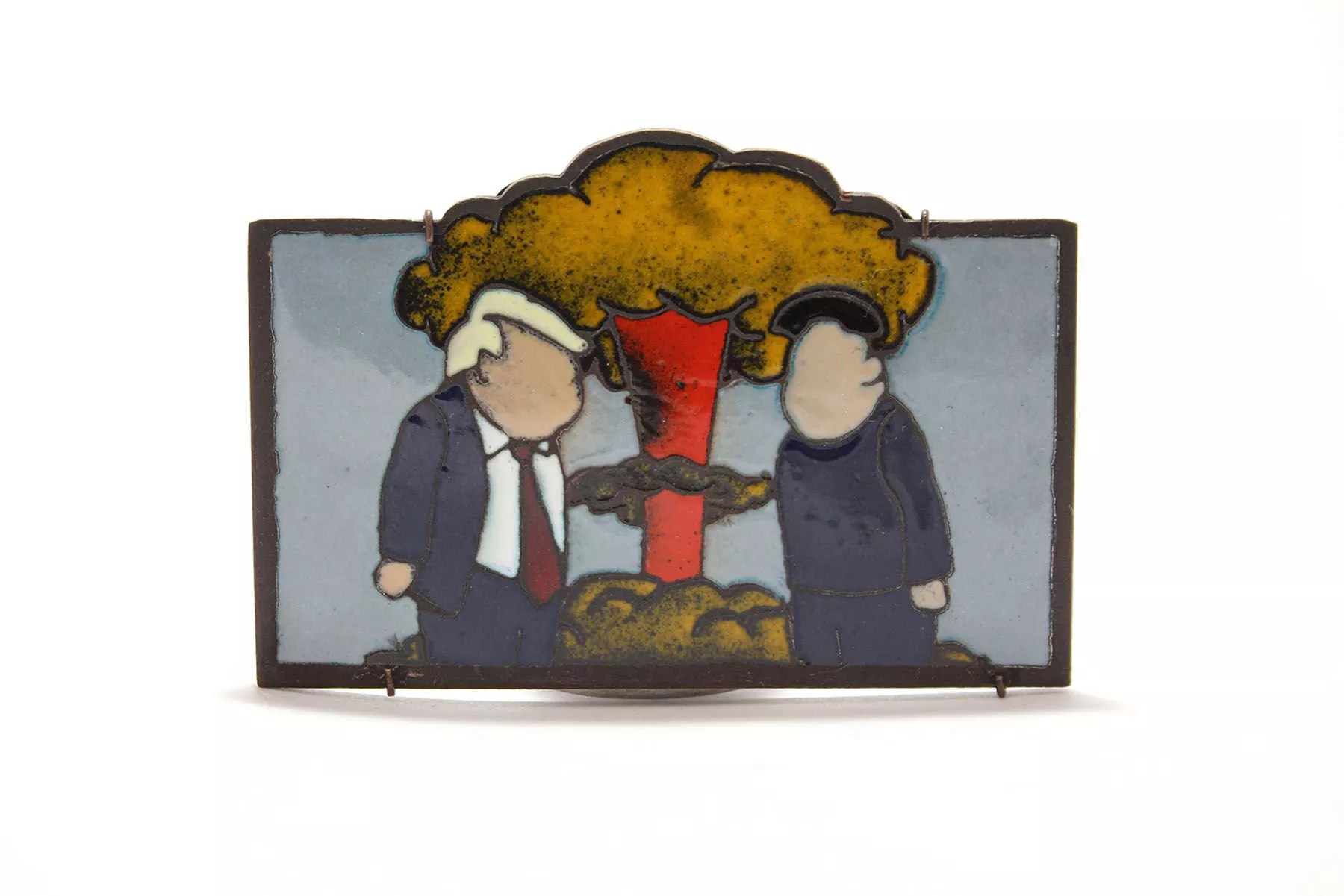 One artist used discarded sneakers to make a small sculpture anchored by the form of a human heart. Another used copper, enamel, and spring steel to depict two world leaders flanking a nuclear mushroom cloud. Check it out on Friday, February 28, when museum hours are 10 a.m. to 5 p.m. The exhibit continues through April 19. Lynn Trimble