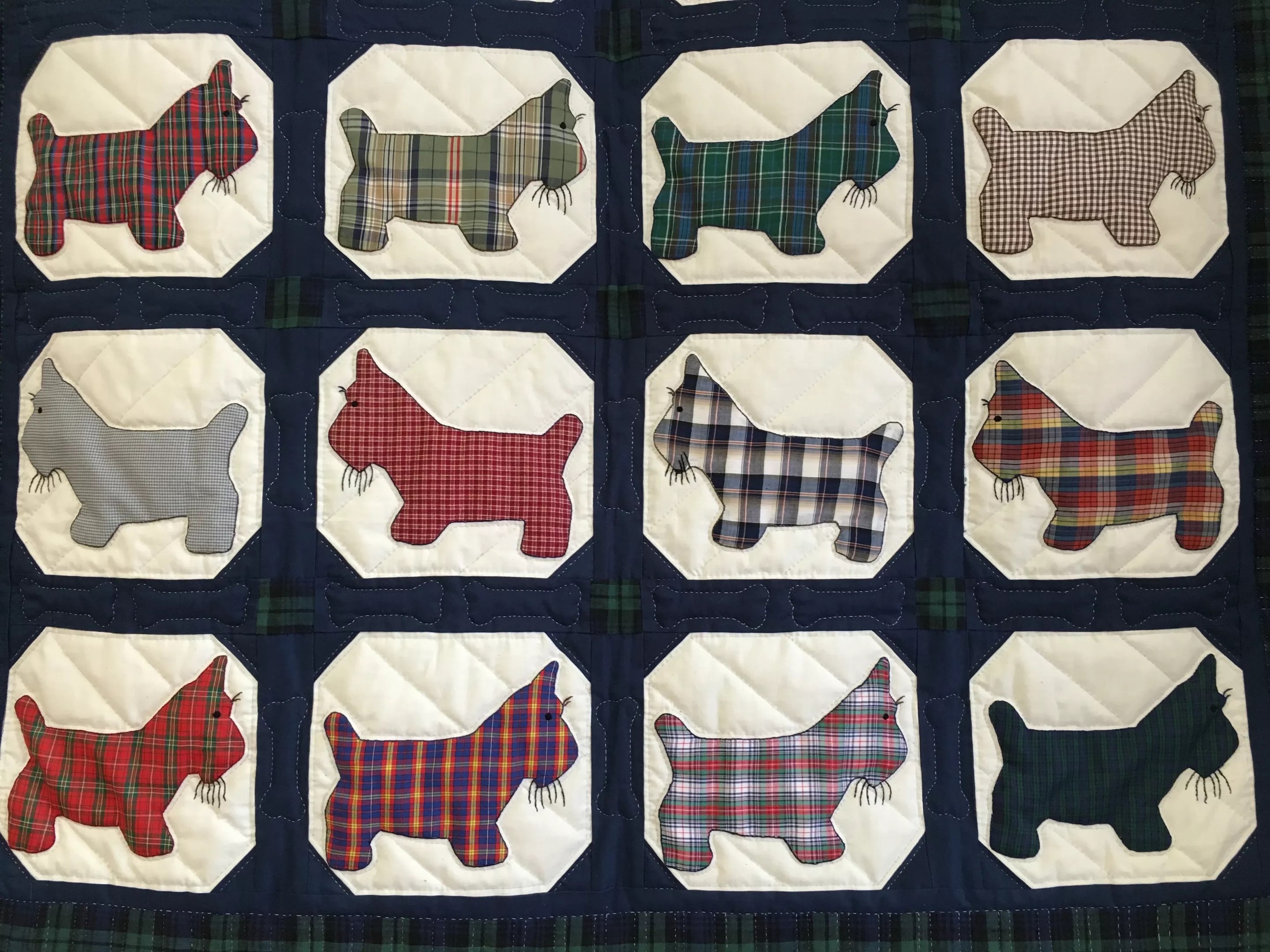 Checking out a dog-theme quilt at the Gilbert Historical Museum.