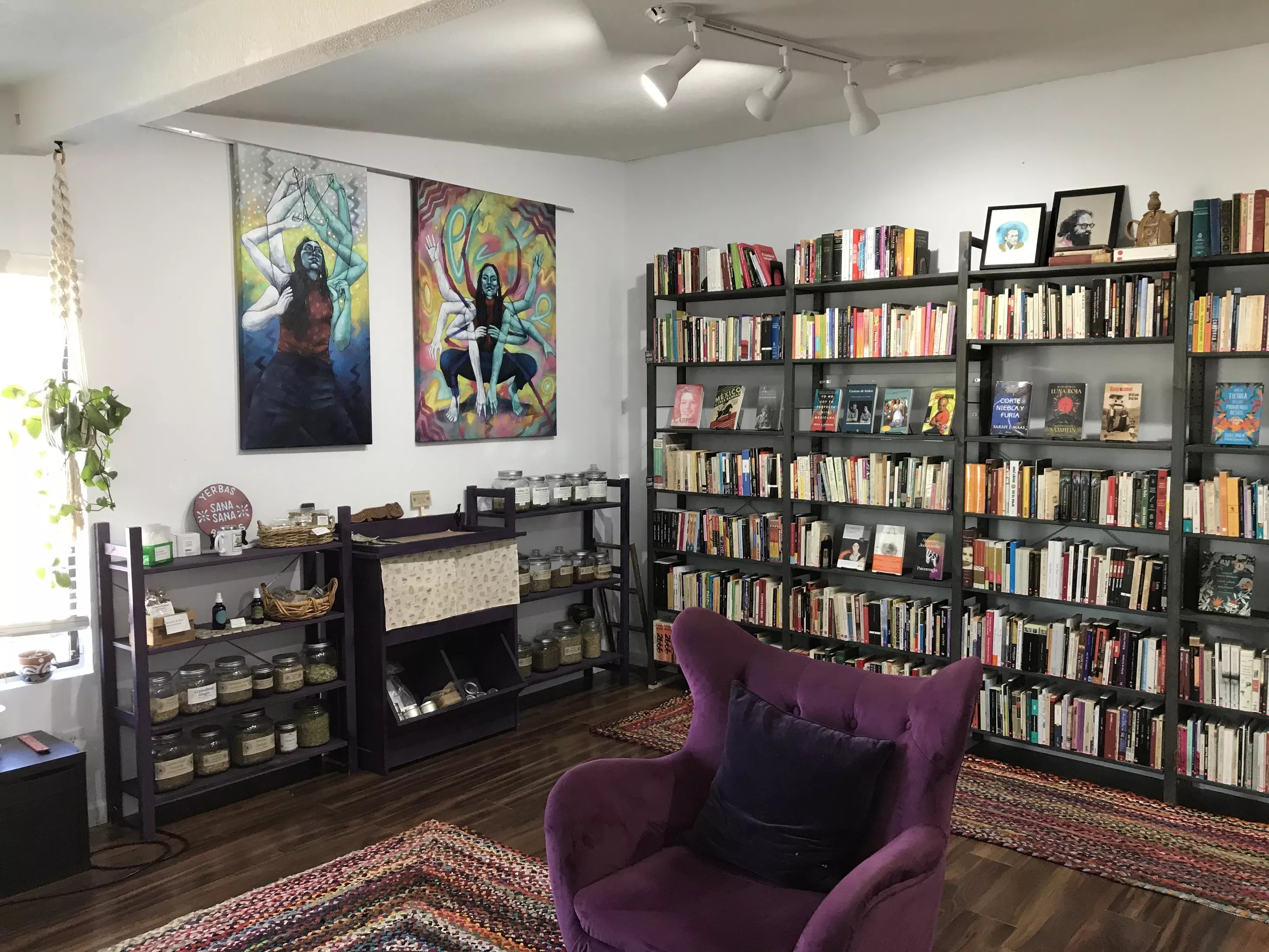 Exploring part of Palabras Bilingual Bookstore at Nurture House.
