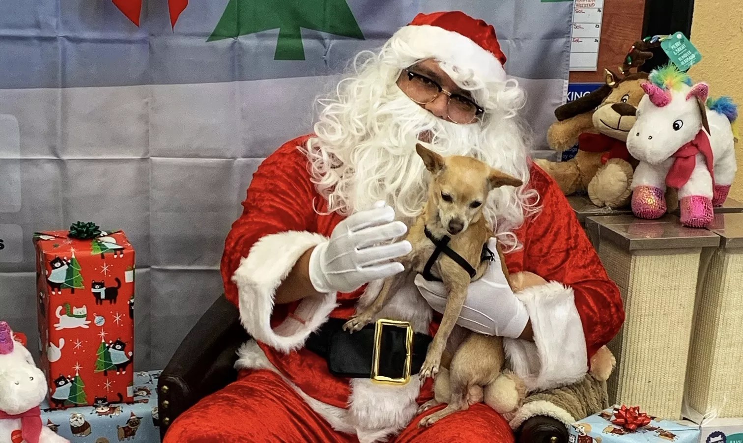 This was his first year at PetSmart, Santa admitted. He said it was different visiting with Chihuahuas than with children. “Dogs get excited, and some of them get scared. Some of them get like this,” Santa said, then waved his fingers in the air and screamed. “But everyone is real happy, so that pleases me.”
