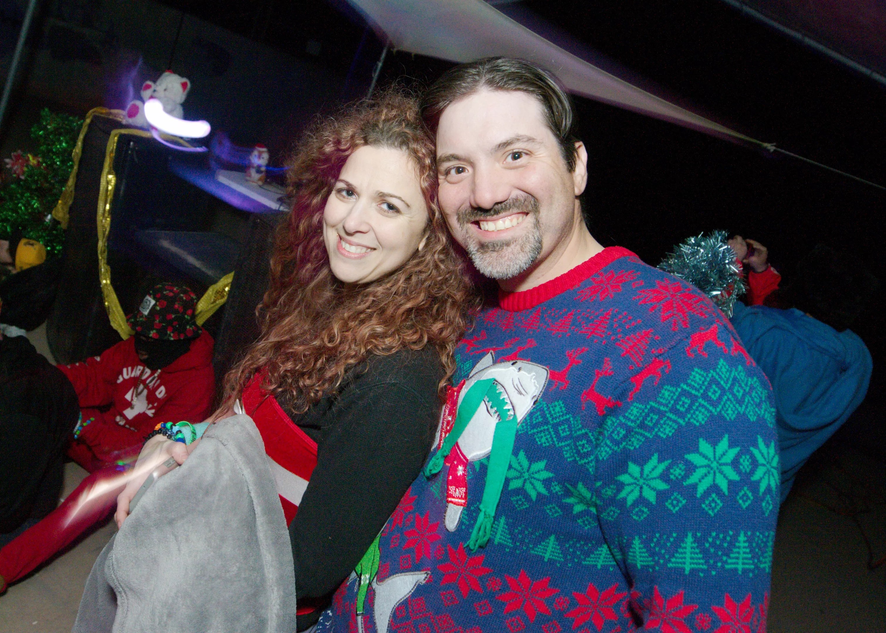 Putting their ugly holiday sweaters to good use.