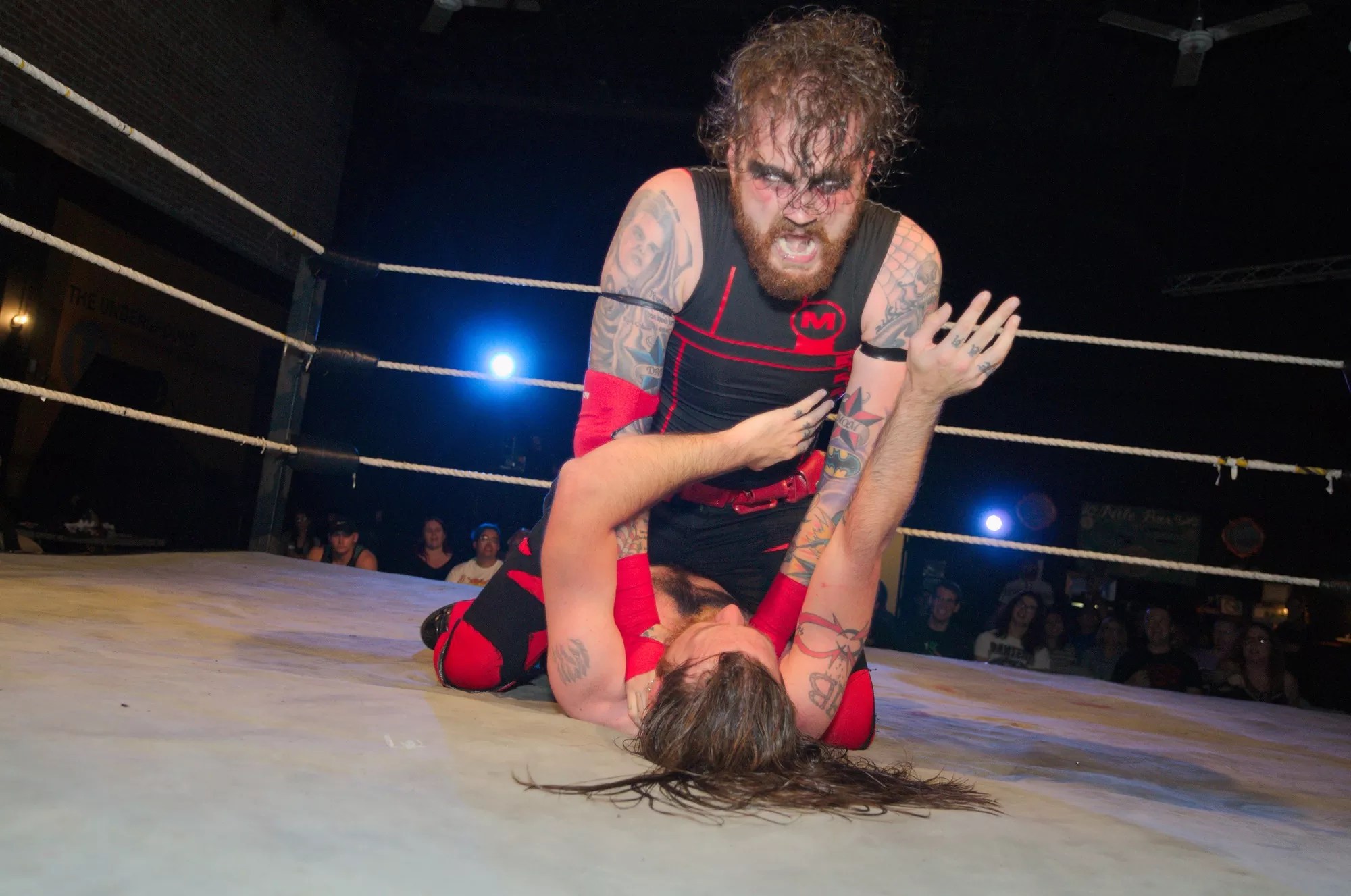 Shane Marvel of Party Hard Wrestling chokes out an opponent.