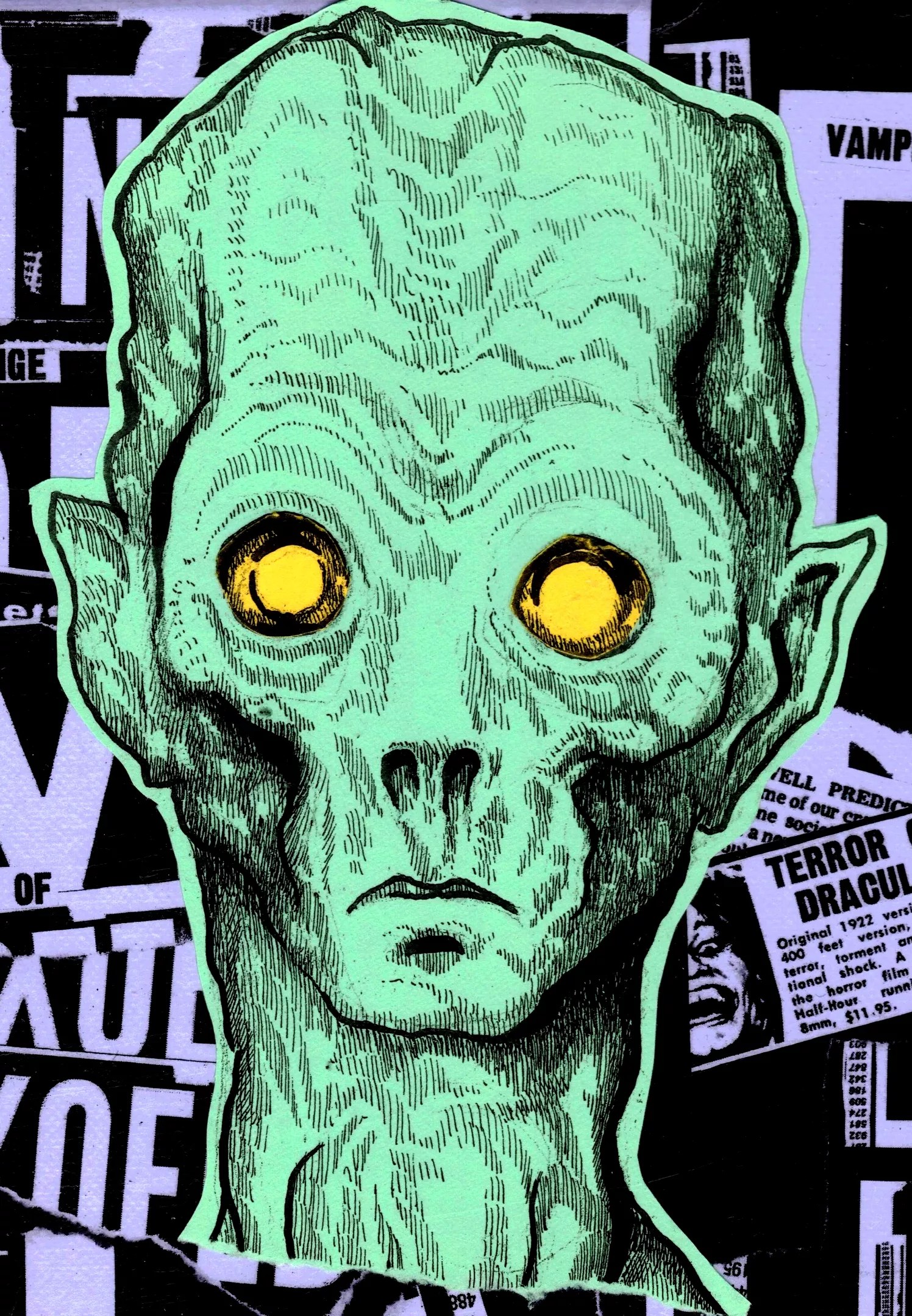 “Monster” is an interesting word for Hunt to use, as much of his most recent work revolves around drawing and painting what most people, including Hunt, would call “monsters.” During our conversations, Hunt repeatedly denies that he considers himself to be a “monster” but there’s clearly pain, frustration and sadness in his voice as he talks about the prospect of seeing his own reflection.