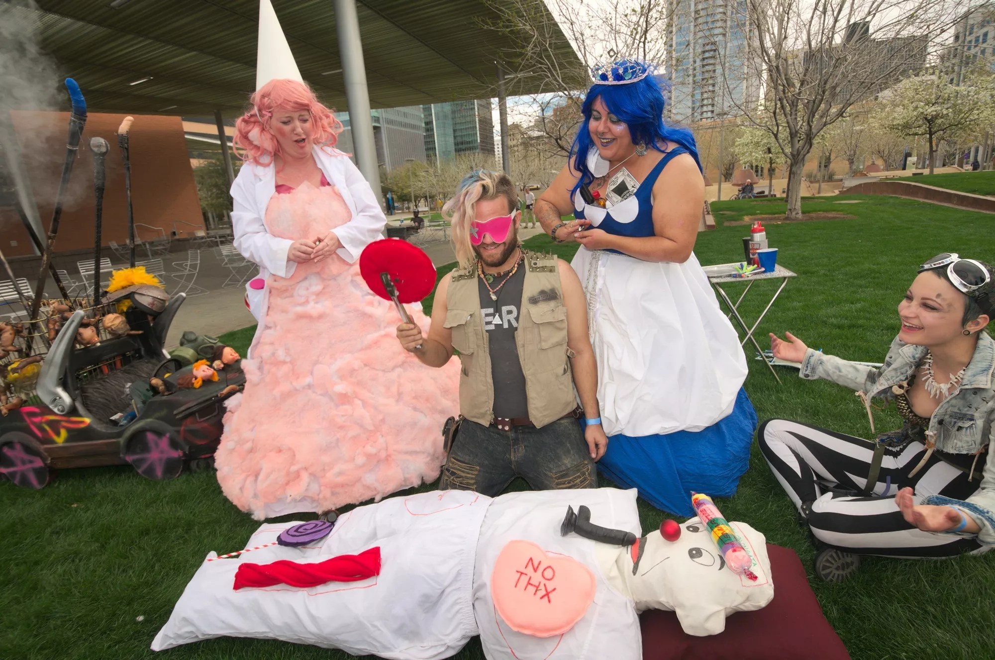 While Freeman’s teams have generally kept their carts PG, he admits getting a chuckle out of Phoenix Idiotarod’s often-twisted challenges at checkpoints. Some are harmless fun – picture Freddie Mercury-impersonation contests or riding tricycles through obstacle courses. Others are more risque, like “cockfighting” battles involving knocking an inflatable penis off an opponent without using their hands. Then, of course, there was the challenge inspired by “The Human Centipede.”