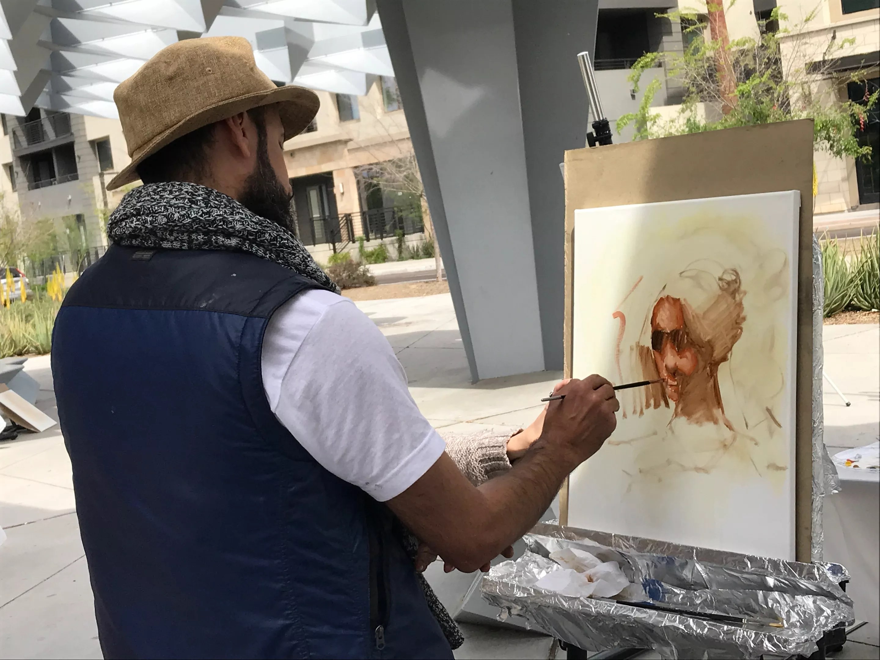 Bassim Al-Shaker teaches a painting class in Roosevelt Row.