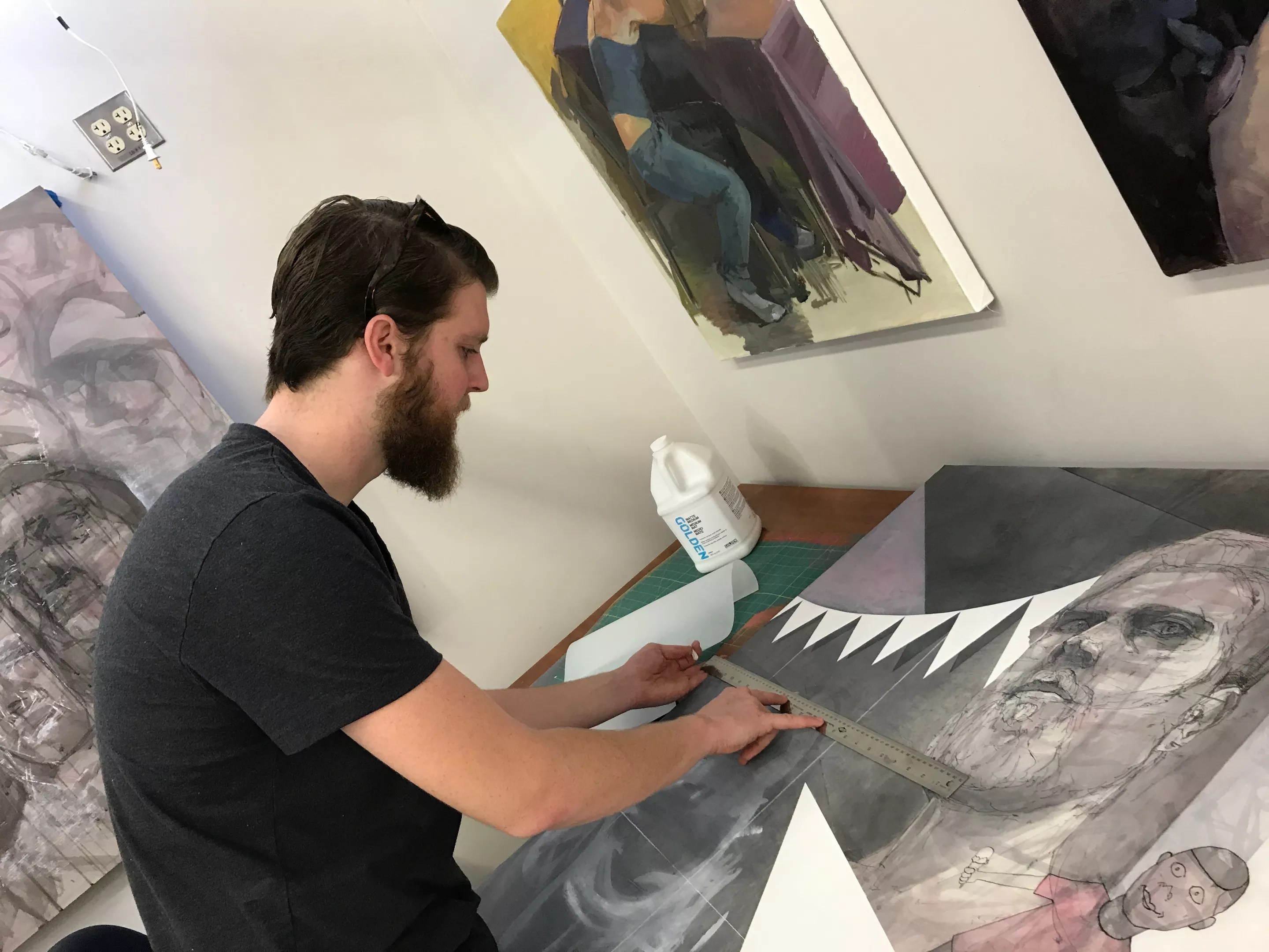 Watching Michael Loren Diaz work during a previous open studio day at Grant Street Studios.