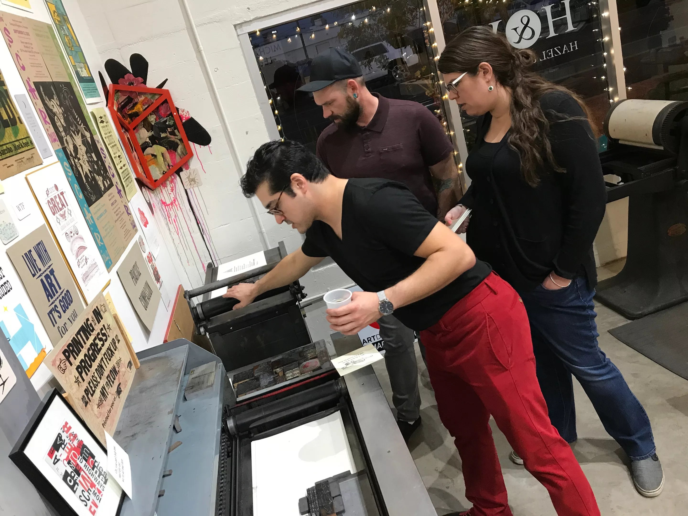 Try printing different projects with the Hazel & Violet team – including hang tags (noon), posters (1 p.m.), and coasters (2 p.m.). Show up at 3 p.m. to print an art-themed fan, or 4 p.m. to print “f*ck” on almost anything you want.