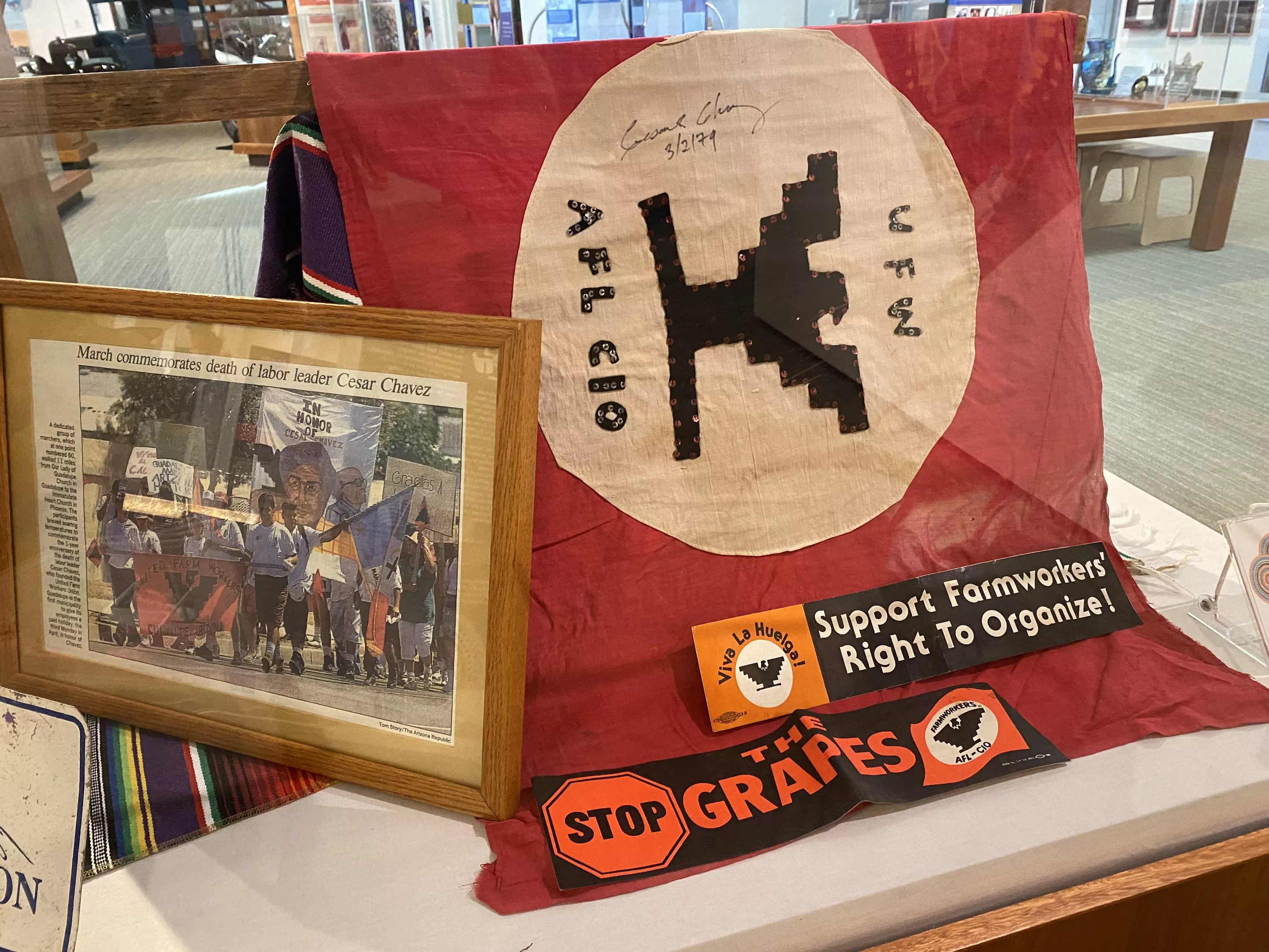 Everything from old photos to deer dancer regalia and instruments are on display. An AFL-CIO flag signed by Cesar Chavez highlights the town’s support of workers’ rights.