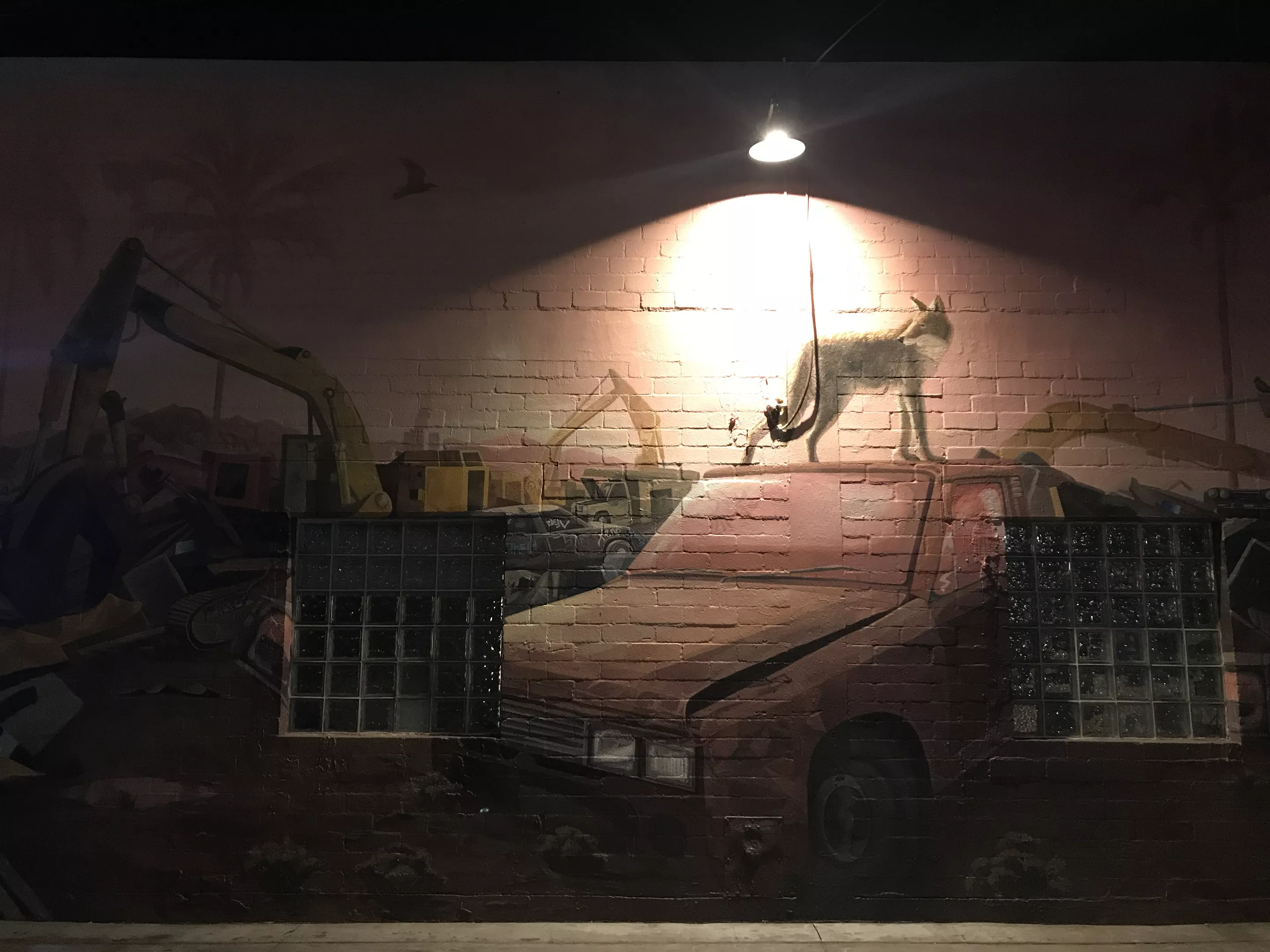 Sky Black’s mural at monOrchid addressing rampant development and the shifting urban landscape.