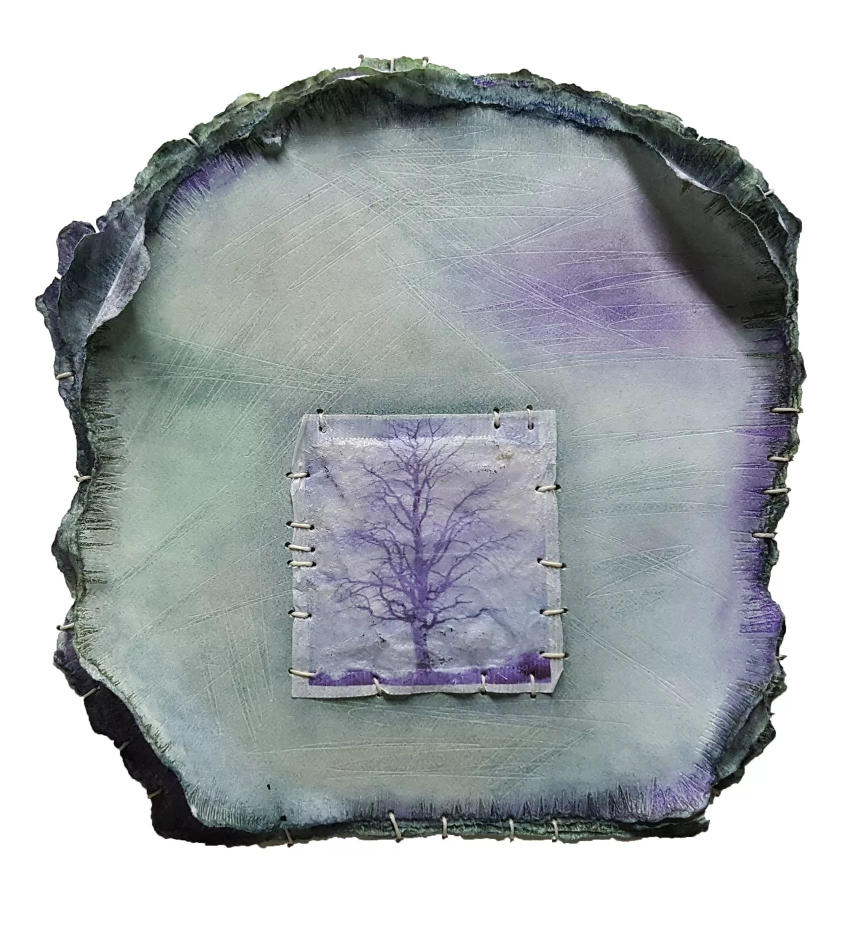 Scherer creates mixed-media works reflecting her interest in human psychology, including the light and shadow theories of early 20th-century psychoanalyst Carl Jung.