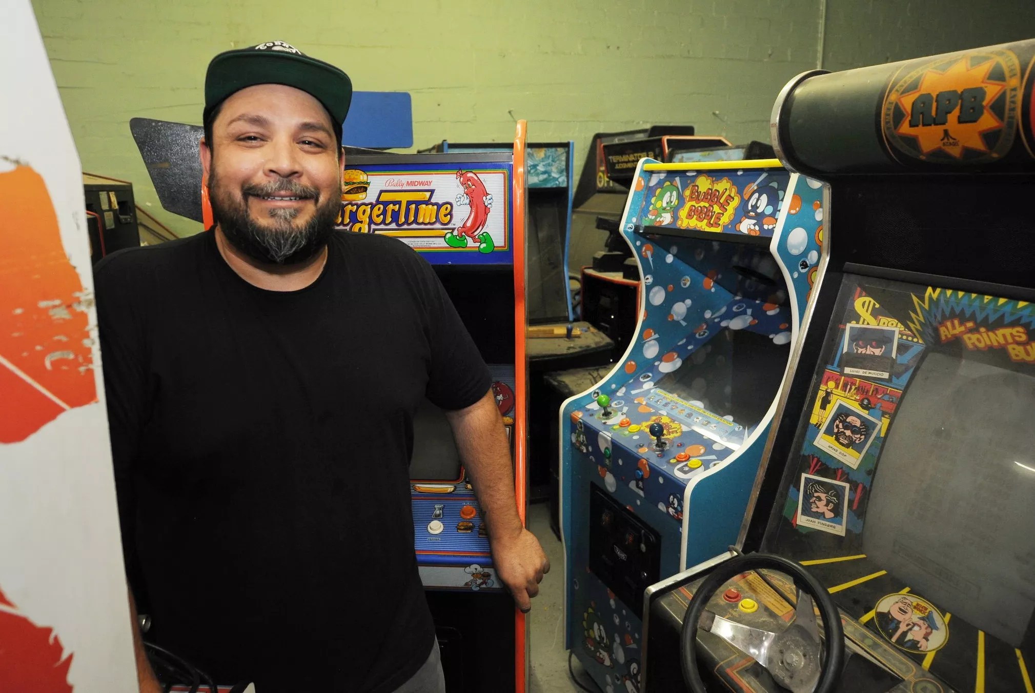 Cobra Arcade Bar co-owner Ariel Bracamonte and some of the many games he owns.