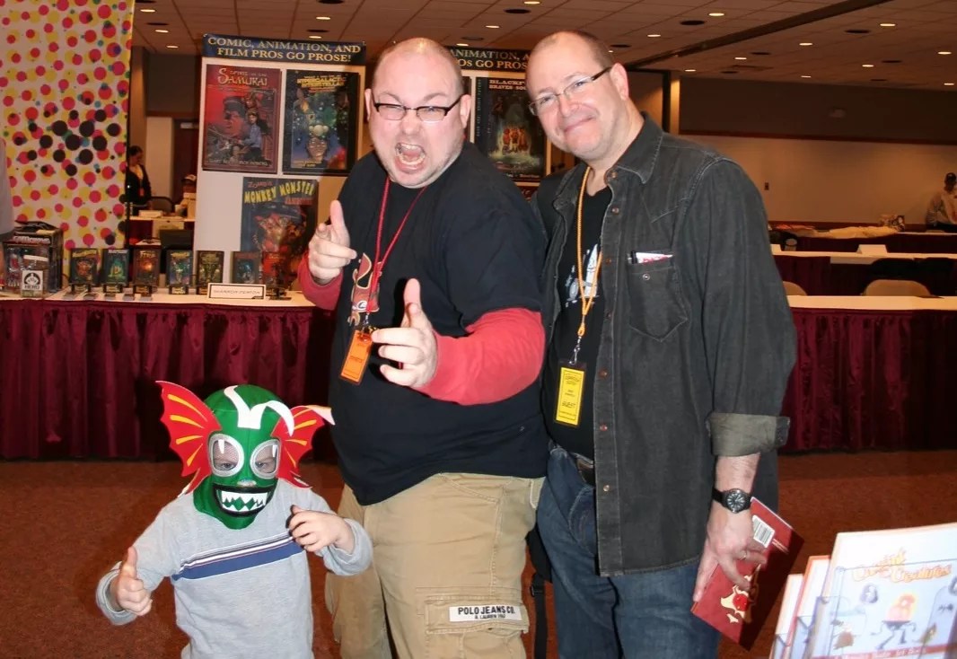 Steam Crow’s Daniel Davis (center) with his son Kaid (left) and Hellboy creator Mike Mignola (right) at Phoenix Cactus Comicon in 2007.
