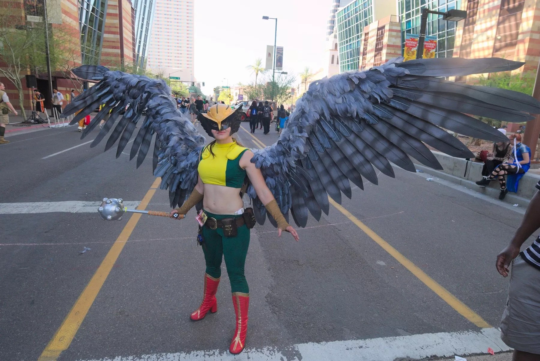 A Hawkgirl cosplayer at Phoenix Comicon 2017.