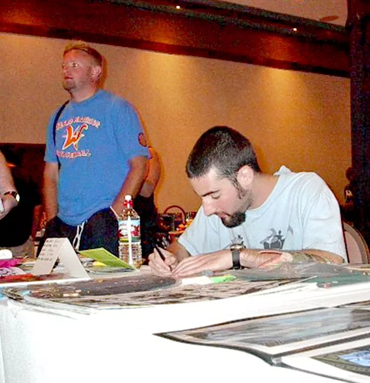 Indie comic book creators Jim Mahfood (right) and Eric Mengel (left) at the first Phoenix Cactus Comicon in June 2002.