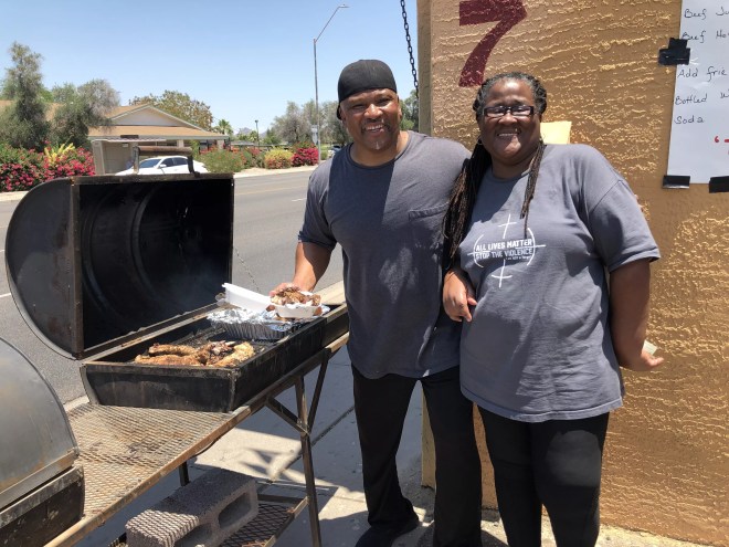 This street-side grill against McDowell Road benefits the homeless.