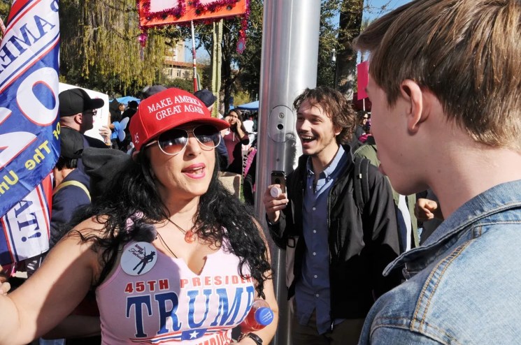 AZ Patriots leader Jennifer Harrison is wanted by police after an altercation at a pro-choice protest.