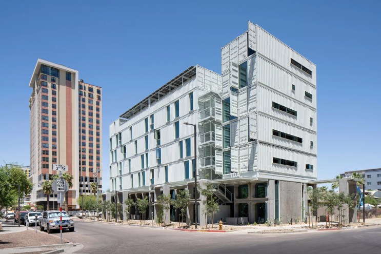 Eighteen Phoenix families are poised to move next week into IDA on McKinley, the tallest tower in North America made entirely out of shipping containers, according to developers.