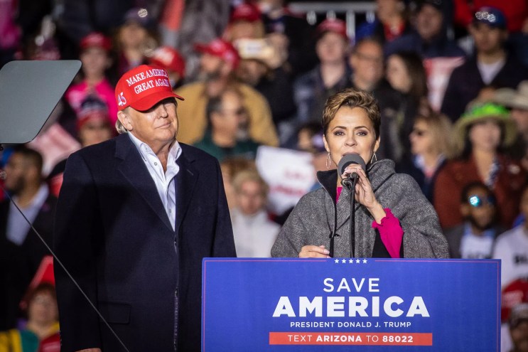 Conservative political action committees poured more than $1 million into the campaign coffers of Trump loyal Arizona Republicans. Just before a rally in Florence Trump shook the donation can once again.