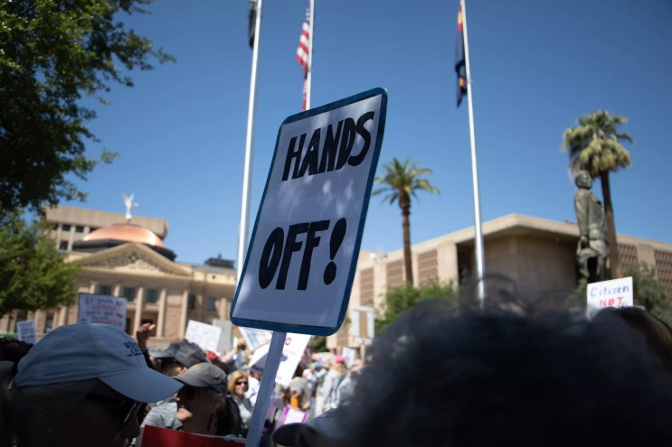 Politics & GovernmentThousands protest Trump and Musk at the Arizona Capitol: 38 photos By Grace Monos