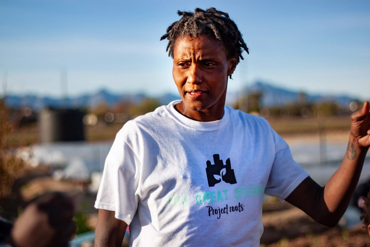 Bridget Pettis founded Project Roots in early 2020. The community garden offers food via a farmers’ market, soup kitchens and food banks, and deliverable produce bags.