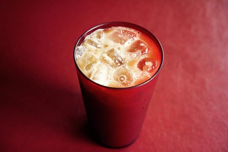 Ozzy Perez begins with a yellow corn tortilla on an oiled grill, loading it with a blend of Monterey jack cheeses, shrimp, and sautéed onions and tomatoes seasoned with garlic and paprika. They add a squirt of their house chipotle sauce, fold, and serve. It is a dish that blurs the line between quesadillas and tacos.