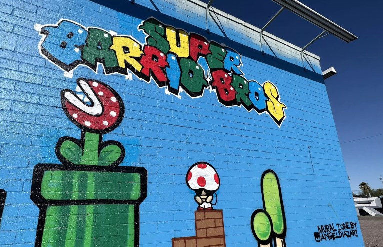 You can’t miss this fun, colorful homage to “Super Mario Bros.”