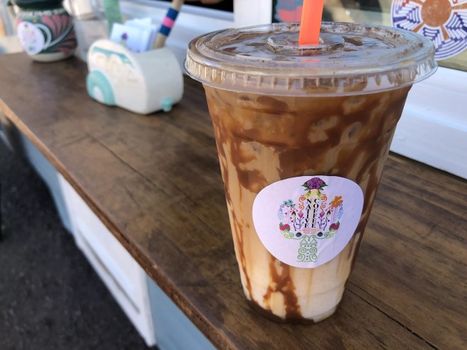 Churro lattes and saguaro blossom tea out of a painted trailer.