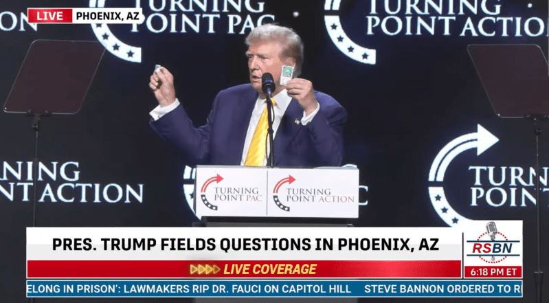 At a Phoenix event, newly convicted felon Donald Trump kissed Joe Arpaio, used Tic Tacs as a prop and made up a word.