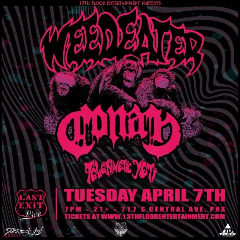 Weedeater When: Tue., Apr 7, 7:00 pm Where: Last Exit Live Tickets: $35.43 | Get Tickets With Conan & Telekinetic Yeti advertisement