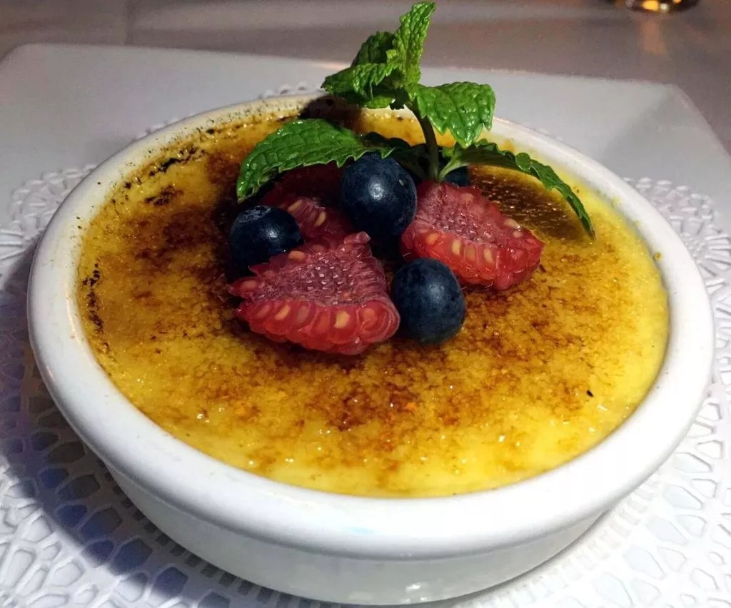 Keep dessert classic with a creme brulee at Voila French Bistro.