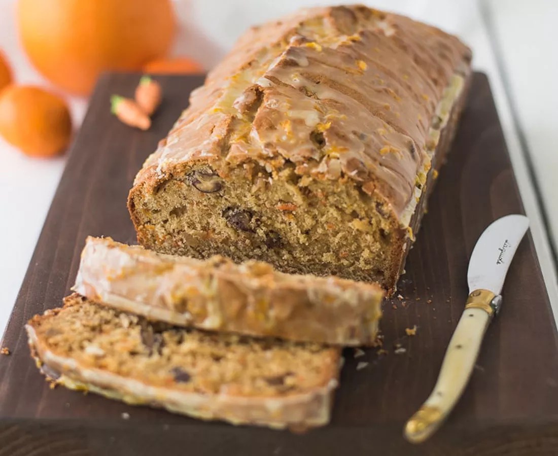 Carrot ginger-spiced bread with orange glaze from Culinary Ginger.