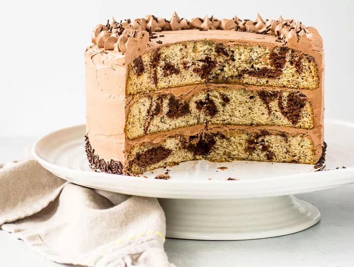 Kelsie Roehl is behind The Itsy-Bitsy Kitchen and a Scottsdale-based food blogger who says she loves cooking, eating, and, most of all, baking. She shares a lot of her buttery, sugary, and all-around delicious recipes on the love. This chocolate banana cake recipe is a twist on the classic marble cake, featuring soft bananas.