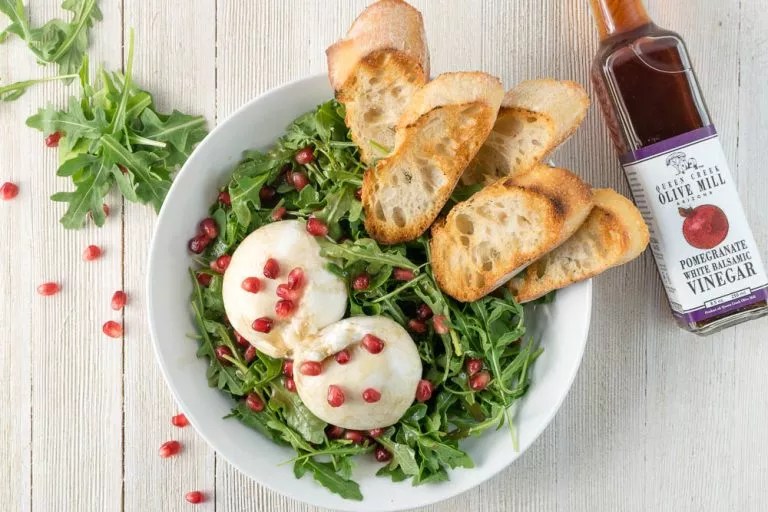 Burrata salad with pomegranate vinaigrette for two from Geeks Who Eat.