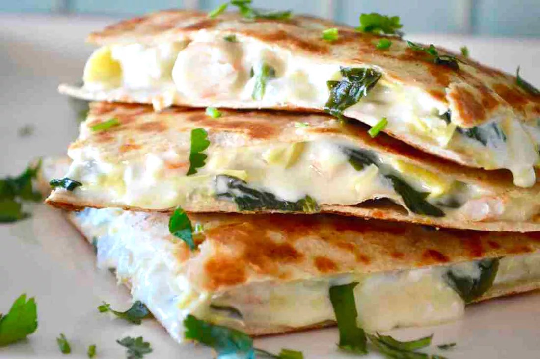 The spinach artichoke shrimp quesadillas from This Delicious House.