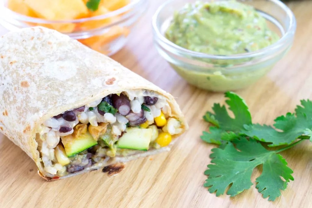 Zucchini burritos with special green sauce from Oat and Sesame.