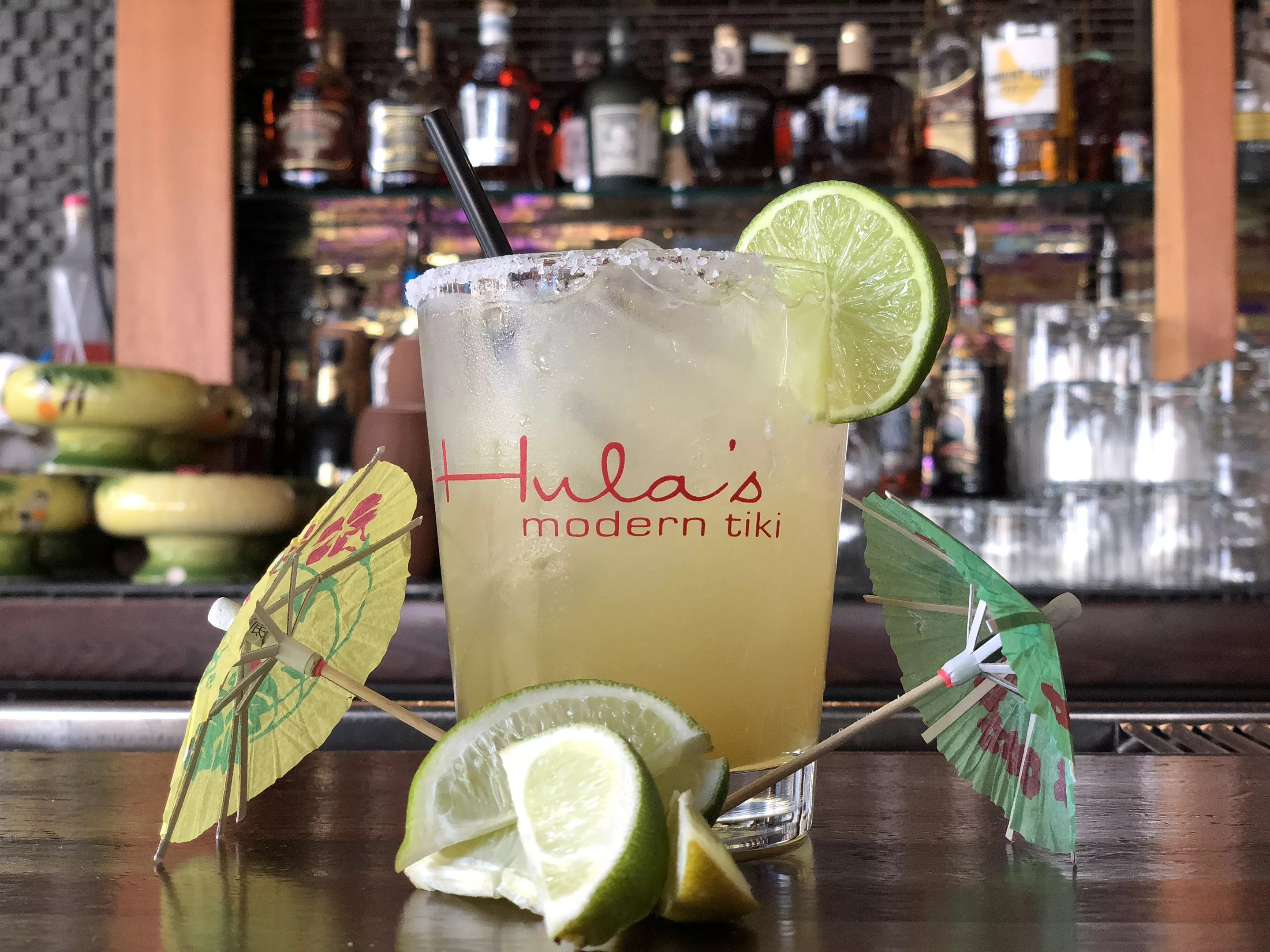 Hula’s Modern Tiki’s Lilikoi Margarita is flavored with passionfruit and orange juice.
