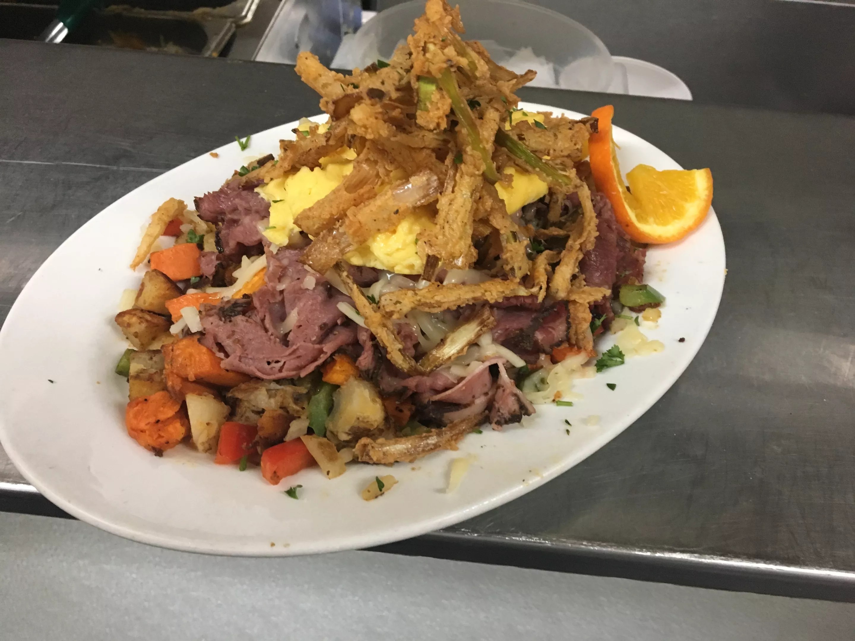 Pastrami hash and eggs at Original Breakfast House might put Dad in a food coma.