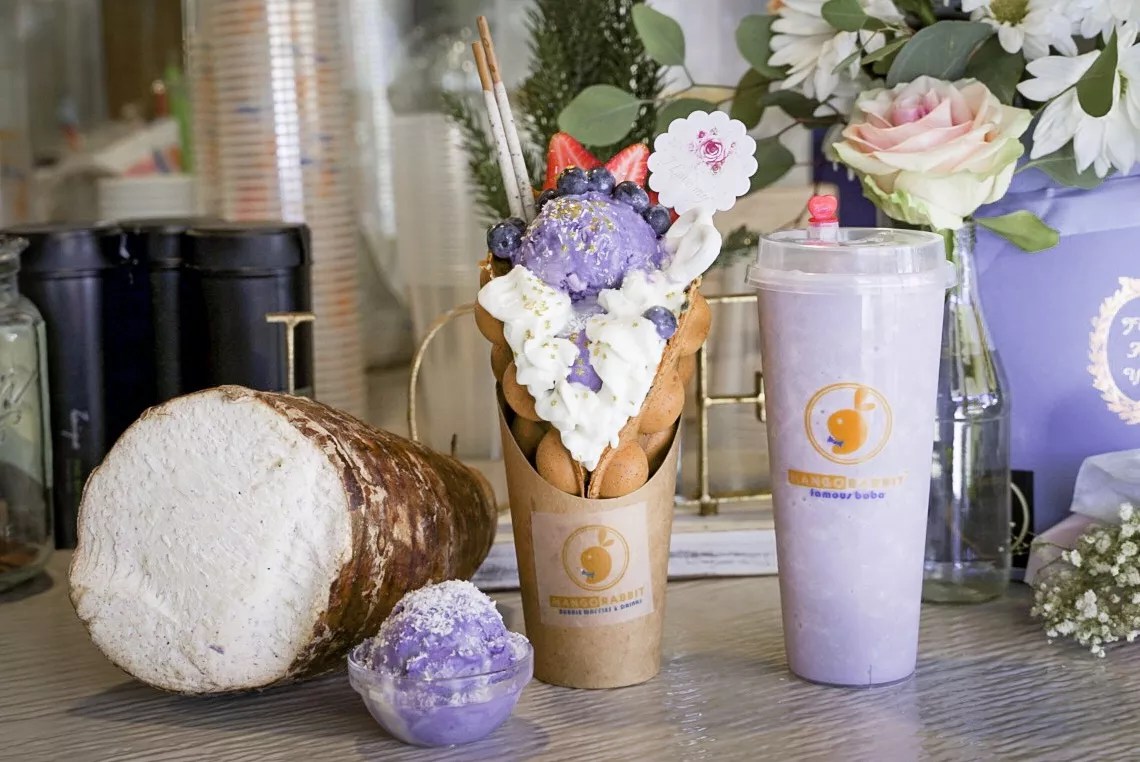 Pretty in purple, the ube bubble waffles are made with fresh ube from the Philippines at Mango Rabbit.