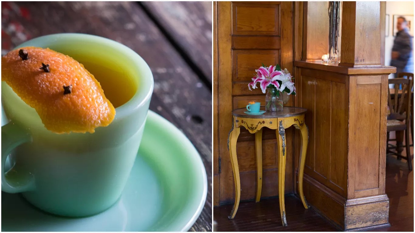 Left: The bar, at least for the winter, is serving hot mulled cider made from Arizona-grown apples. Right: Chris Bianco rushes by on a routine run through the space.