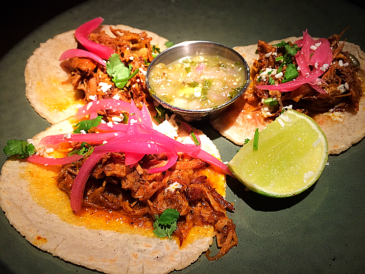 The cochinita pibil tacos at Ladera. The restaurant makes its own corn tortillas.
