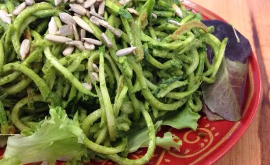 Zucchini pesto pasta at 24 Carrots makes going gluten-free a no-brainer.