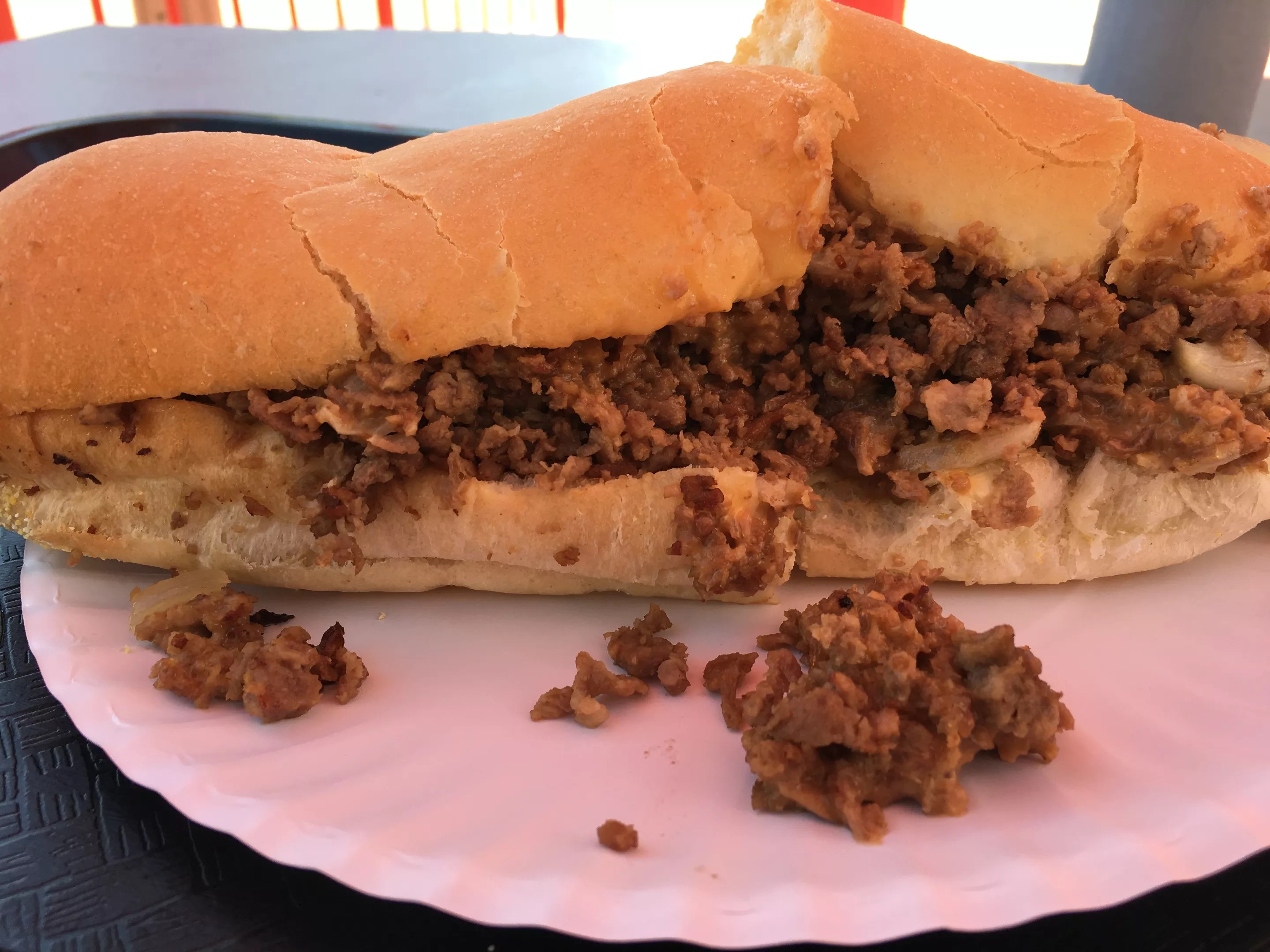 A few minutes later, I was sitting in the sun with my non-Philly Philly cheesesteak.