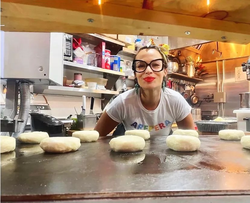 Owner Angelica Urrego with cheese-stuffed arepas at Arepa Babe.