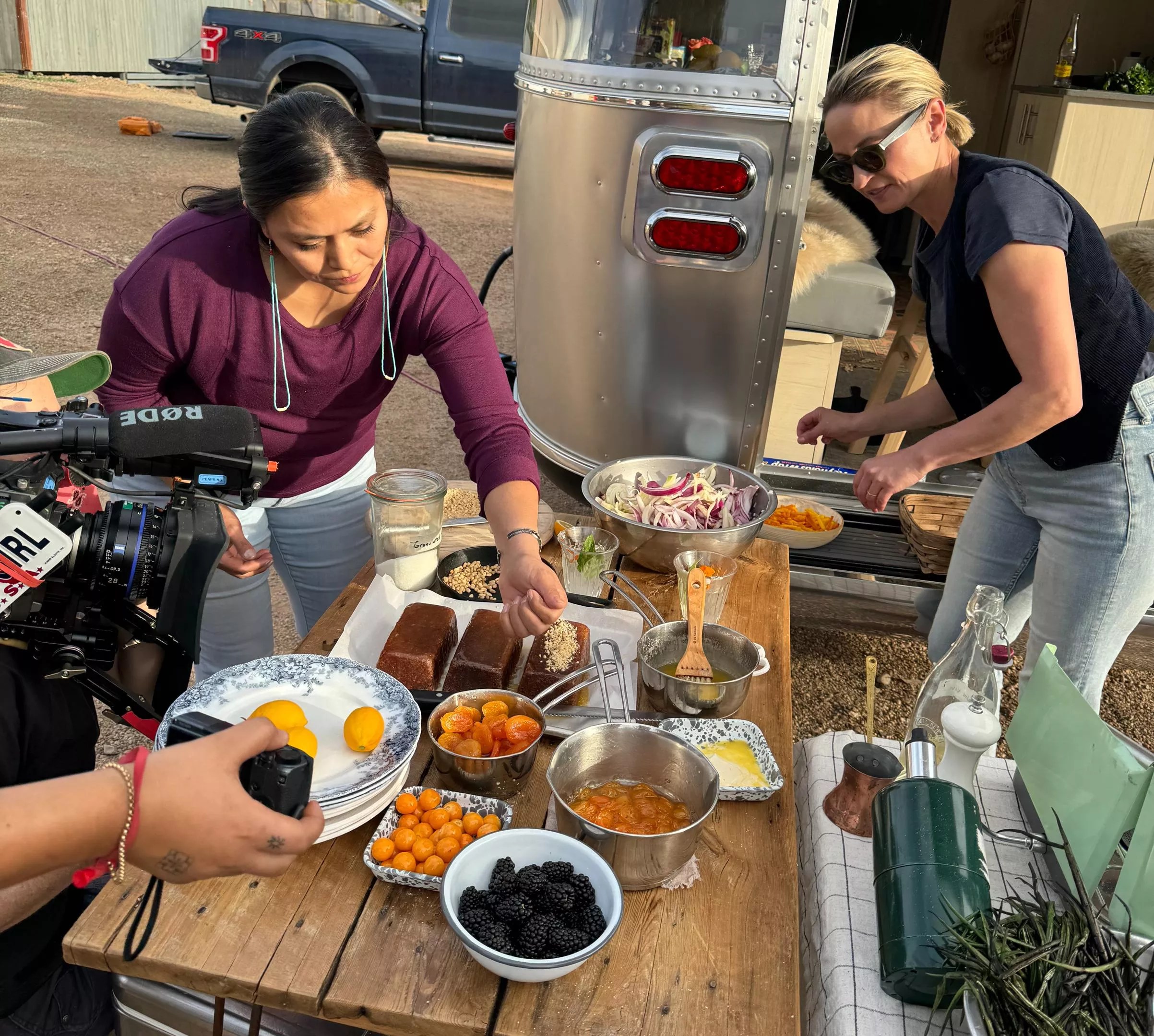 Thalia Roessel and Erin French prepare dessert while being filmed for “Getting Lost with Erin French.”