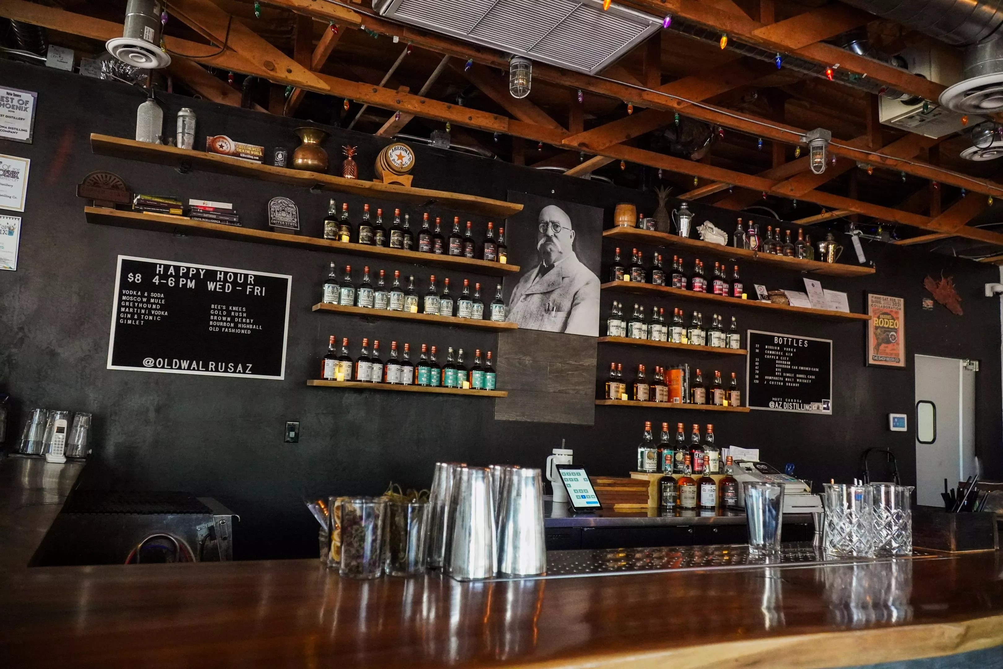 In 2012, co-owners Grossmiller and Jonathan Eagan opened Arizona Distilling Co. in an industrial site west of downtown Tempe near Fifth Street and Farmer Avenue. In 2016, they moved the distillery into its current location. A few years later, the team launched their cocktail bar Old Walrus under the direction of tenured mixologist and Arizona Distilling Co.’s beverage director Micah Olson.