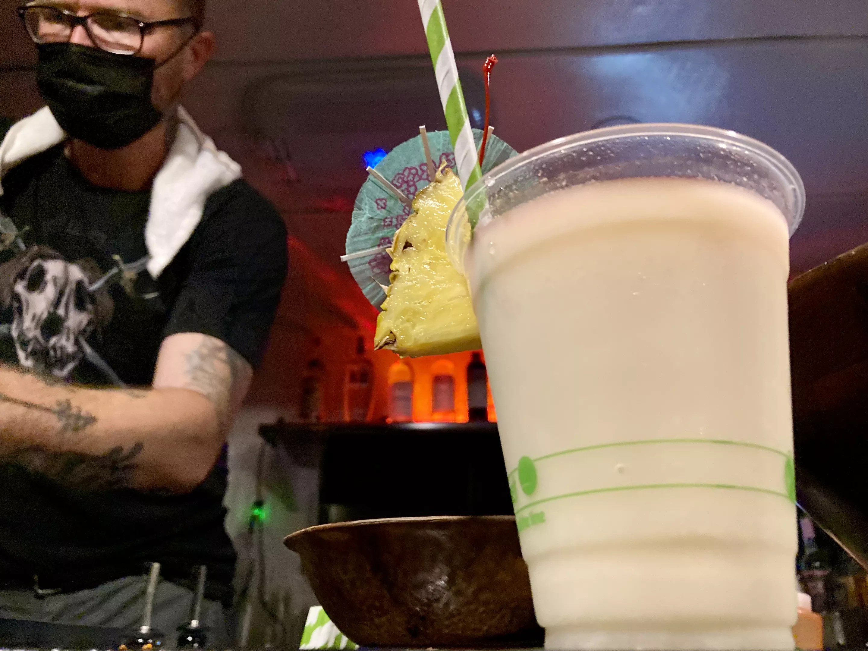 The drinks are … sugary. They are very sweet. One member of our party bailed, both on the Mojito and the party, to go find a beer. Another took a few minutes to get used to the Blue Hawaiian (predicting a stomachache all the while) but then finished it within minutes. Turns out there was a Starbucks-level amount of ice in that cup.