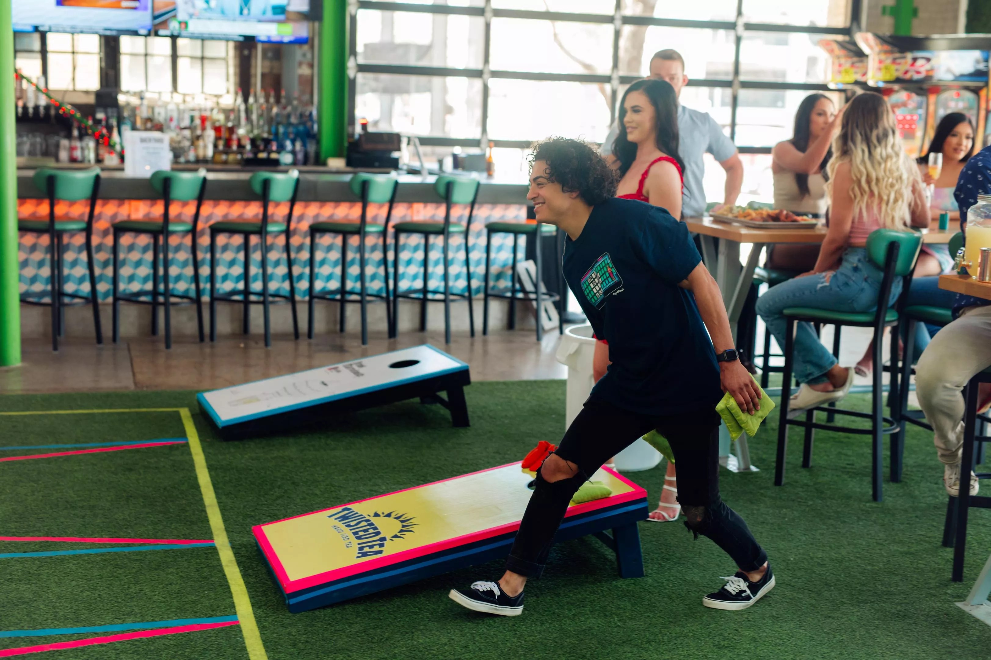To create an al fresco feel, three of Backyard’s four walls will open to the outdoors. The 8,000-square-foot space is chock full of entertainment with Pop-a-Shot and corn hole, four 18-by-10-foot LED screens that can air up to 32 games simultaneously and a stage ready to welcome bands and DJs.