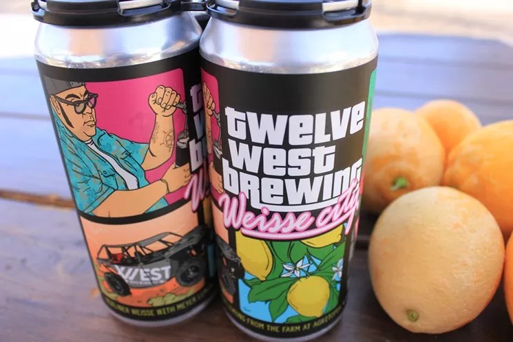 Anyone who played video games last decade will remember Grand Theft Auto: Vice City. Last week, 12 West Brewing in Gilbert released a beer that nods to the game. The brew is called Weisse City. Cans come decorated with cartoon art that pulse with color. More than 200 pounds of lemons were used to brew Weisse City, and they all came from within Agritopia, a few hundred feet from the tap room. Tartness created by kettle souring is on the soft end, dovetailing with the perfumey character of Meyer lemons. With a mellow citrusy backbone and an ABV of 4.3 percent, this beer is crushable.