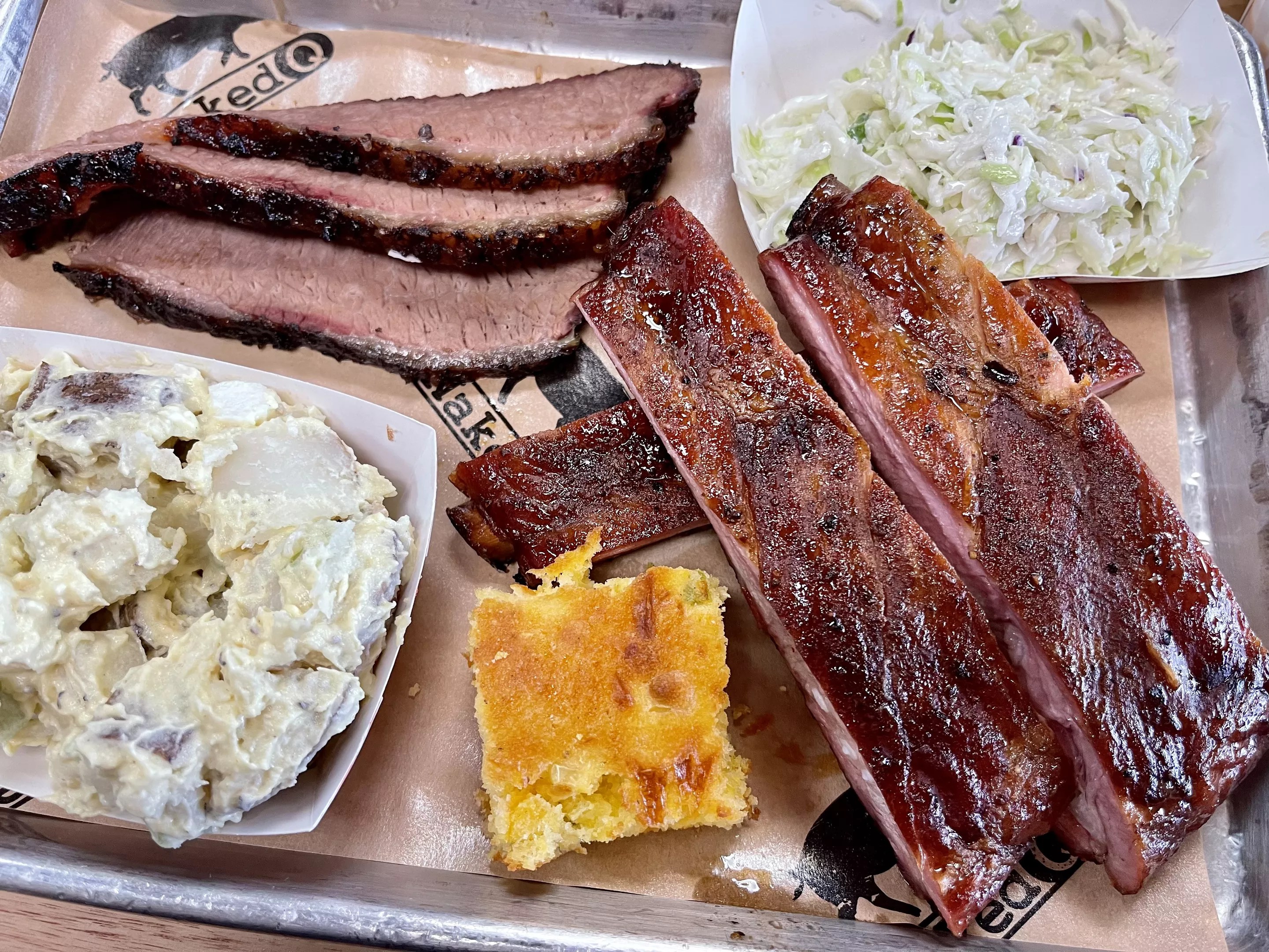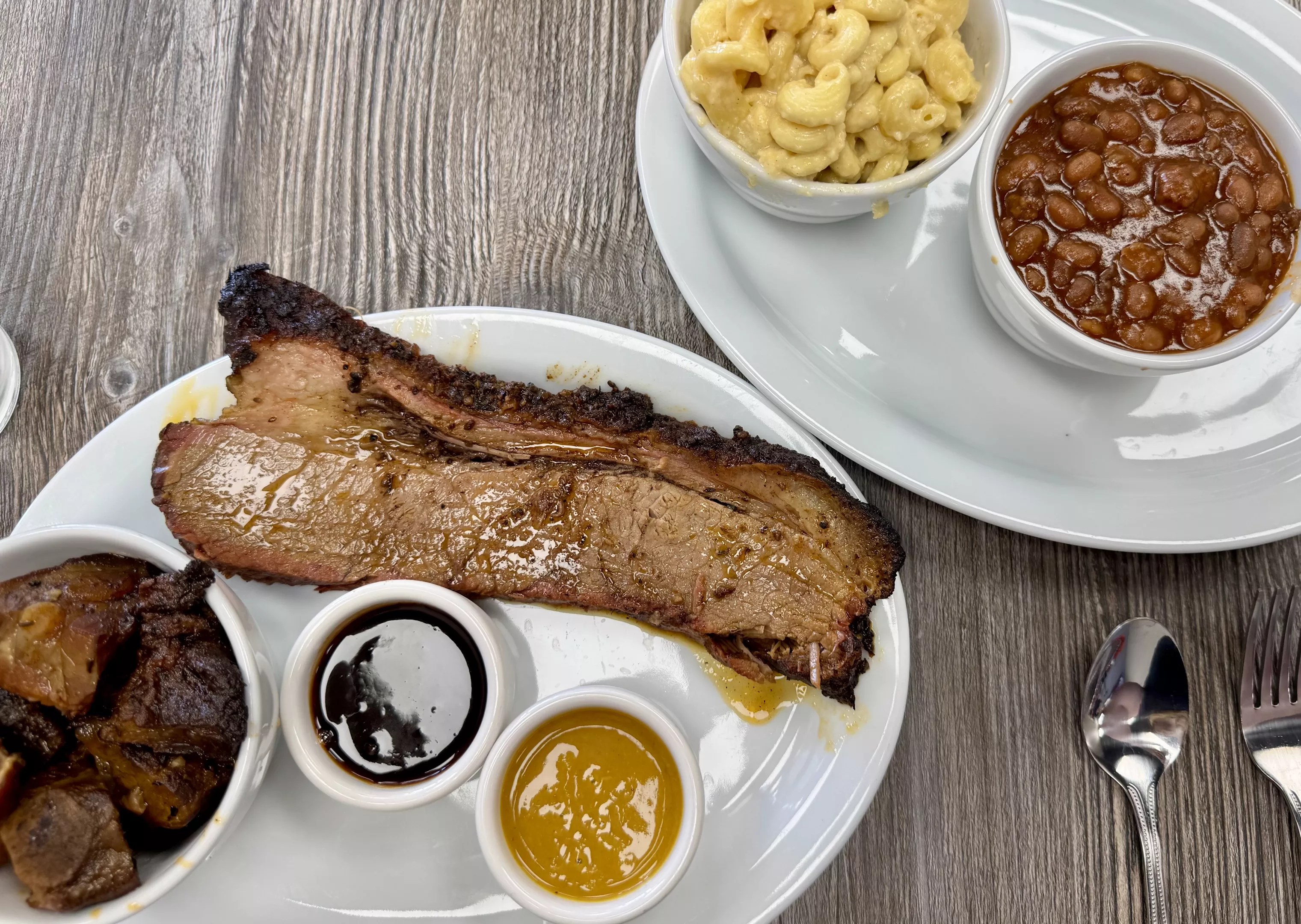 The four-meat plate comes with two sides and allows customers to try a little of everything at Sweet Magnolia Smokehouse.